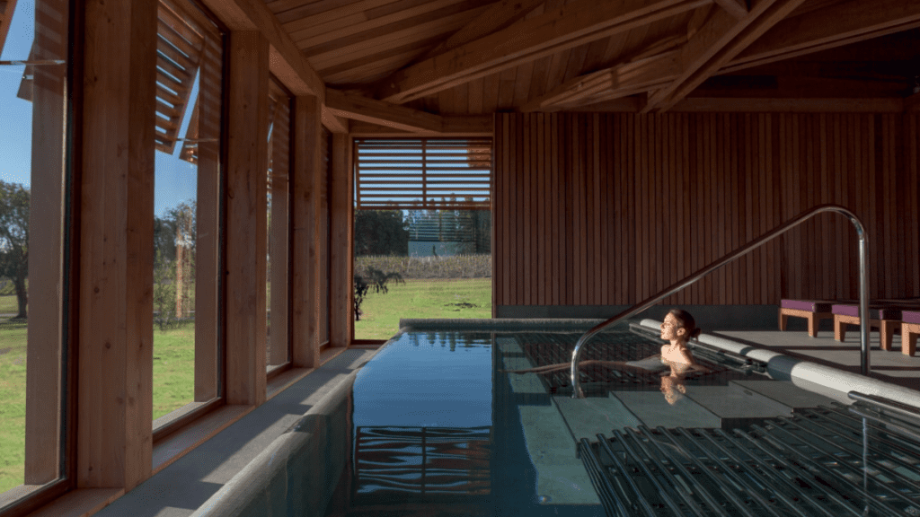 Os hóspedes podem desfrutar de atividades como degustação de vinhos e aulas de culinária, além de desfrutar dos tratamentos divinos de VINOTERAPIA.