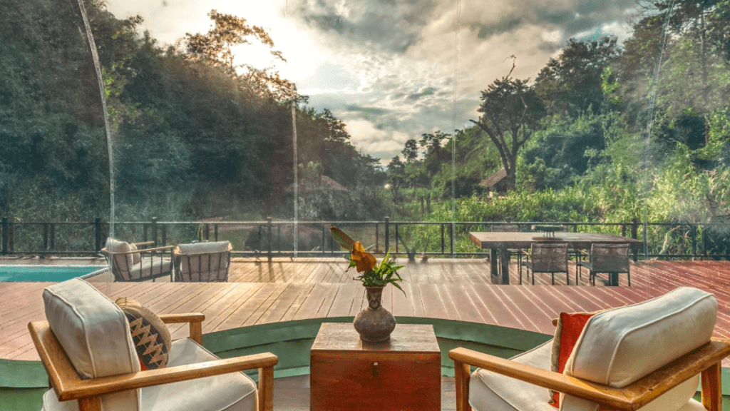 “Jungle Bubbles” são quartos em formato de bolha, localizados ao lado dos elefantes, proporcionando uma experiência única e imersiva. As bolhas são equipadas com cama king-size, ar-condicionado, minibar e uma área de jantar.